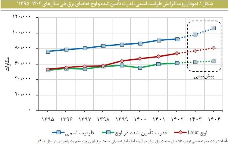 بر اساس پیشبینیهای همین گزارش، ناترازی برق در سال ۱۴۰۳ به حدود ۱۵,۰۰۰ مگاوات و در صورت تداوم روند کنونی، در سال ۱۴۰۴ به بیش از ۲۰,۰۰۰ مگاوات خواهد رسید. وزارت نیرو نیز در گزارش سالانه خود با عنوان «صنعت آب و برق» اعلام کرده که ناترازی برق در زمان اوج مصرف از ۱,۶۰۰ مگاوات در سال ۱۳۹۶ به حدود ۲۰,۰۰۰ مگاوات در سال ۱۴۰۳ افزایشیافته است. این آمار نشاندهنده یکروند صعودی پایدار در شکاف عرضه و تقاضای برق است که با ادعای رفع ناترازی در سال جاری مغایرت دارد.