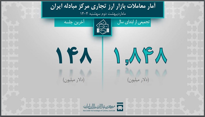 حجم معاملات روزانه بازار ارز تجاری در روز سه شنبه ۲ اردیبهشت ماه ۱۴۰۴ معادل ۱۴۸ میلیون دلار و حجم کل معاملات در بازار ارز تجاری از ابتدای سال جاری تا ۲ اردیبهشت یک میلیارد و ۸۴۸ میلیون دلار بوده است.