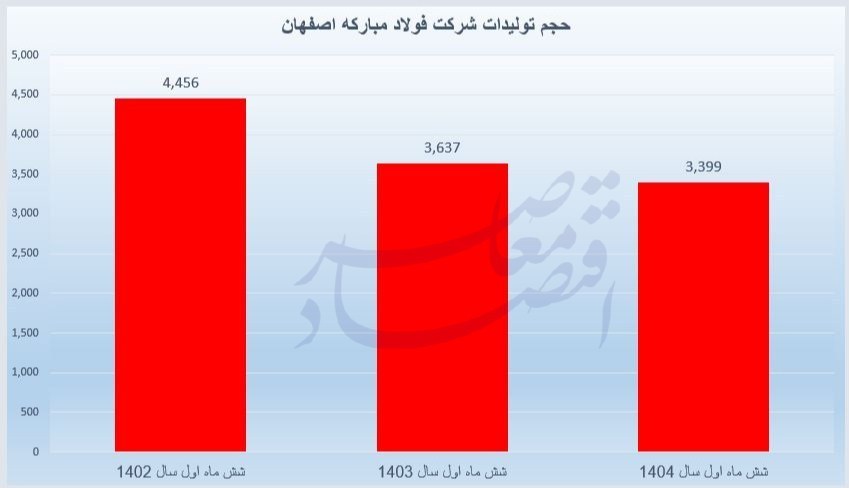 طبق گزارشی که اقتصاد معاصر از این شرکت در آمار کدال منتشر کرده است، در ۶ ماه اول سال ۱۴۰۲ میزان تولیدات شرکت فولاد مبارکه ۴ میلیون و ۴۵۶ هزار تن بوده است که این رقم در ۶ ماه اول سال ۱۴۰۳ به ۳ میلیون و ۶۳۷ هزار تن و در ۶ ماه سال جاری به ۳ میلیون و ۳۹۹ هزار تن کاهش یافته است. بنابراین بالاترین حجم تولیدات این شرکت مربوط به دوره ۶ ماه ۱۴۰۲ است.